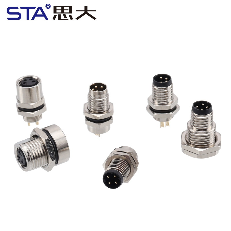 О: Этот металлический разъём M8 под пайку доступен в вариантах с 3, 4, 5, 6 и 8 выводами и подходит для различных промышленных и электронных приложений.
