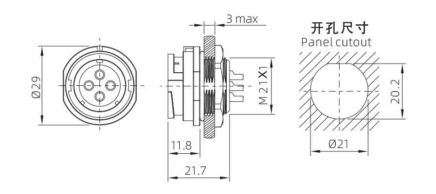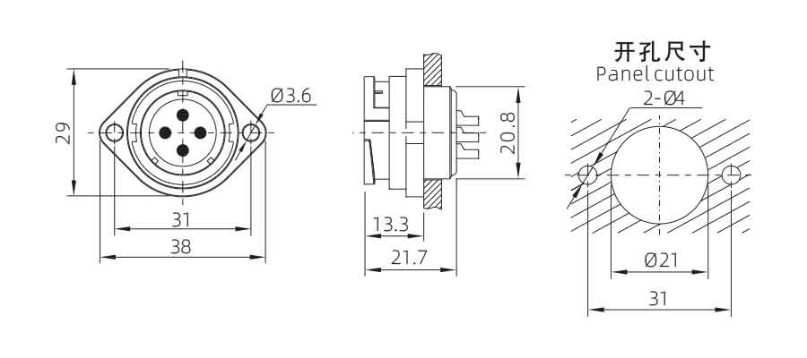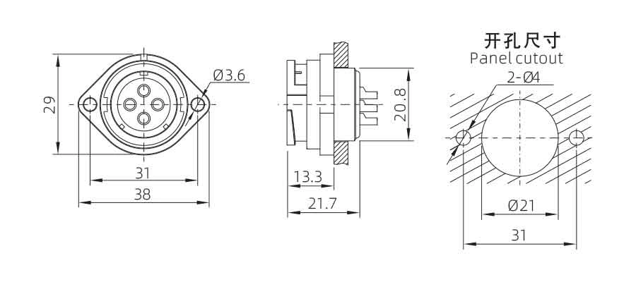 | SY21 Двухотверстиевая розетка с наружным фланцем | SY21 Двухотверстный фланцевый разъем с внутренней резьбой |