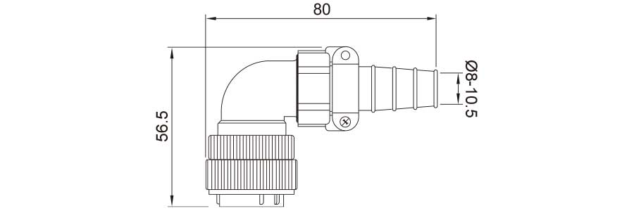 | Угловой штекер с задним корпусом и кабельным зажимом | Угловое гнездо с задним корпусом и кабельным зажимом |